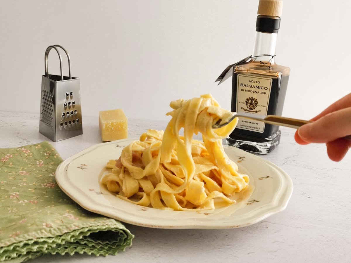 Tagliatelle with Bacon and Cream of Balsamic