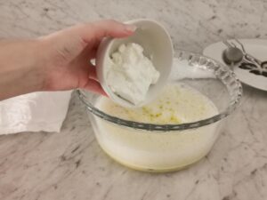 - 1 sachet Paneangeli baking mix with vanilla or replace it with 2 teaspoons baking powder + 1/2 teaspoon baking soda + vanilla (how much depends on the type you use)