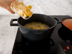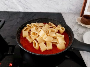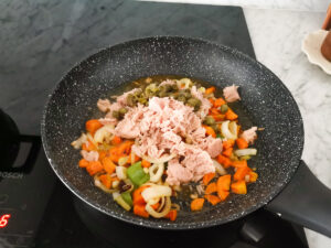 - When it boils, add the calamari pasta for the tuna pasta bake. Cook following the packaging instructions.