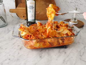 When I say it’s not healthy I mean it’s not a salad and fish with a simple olive oil dressing; it’s neither a 5 ingredient pasta; it has a lot of cheese; and it’s not low in calories.