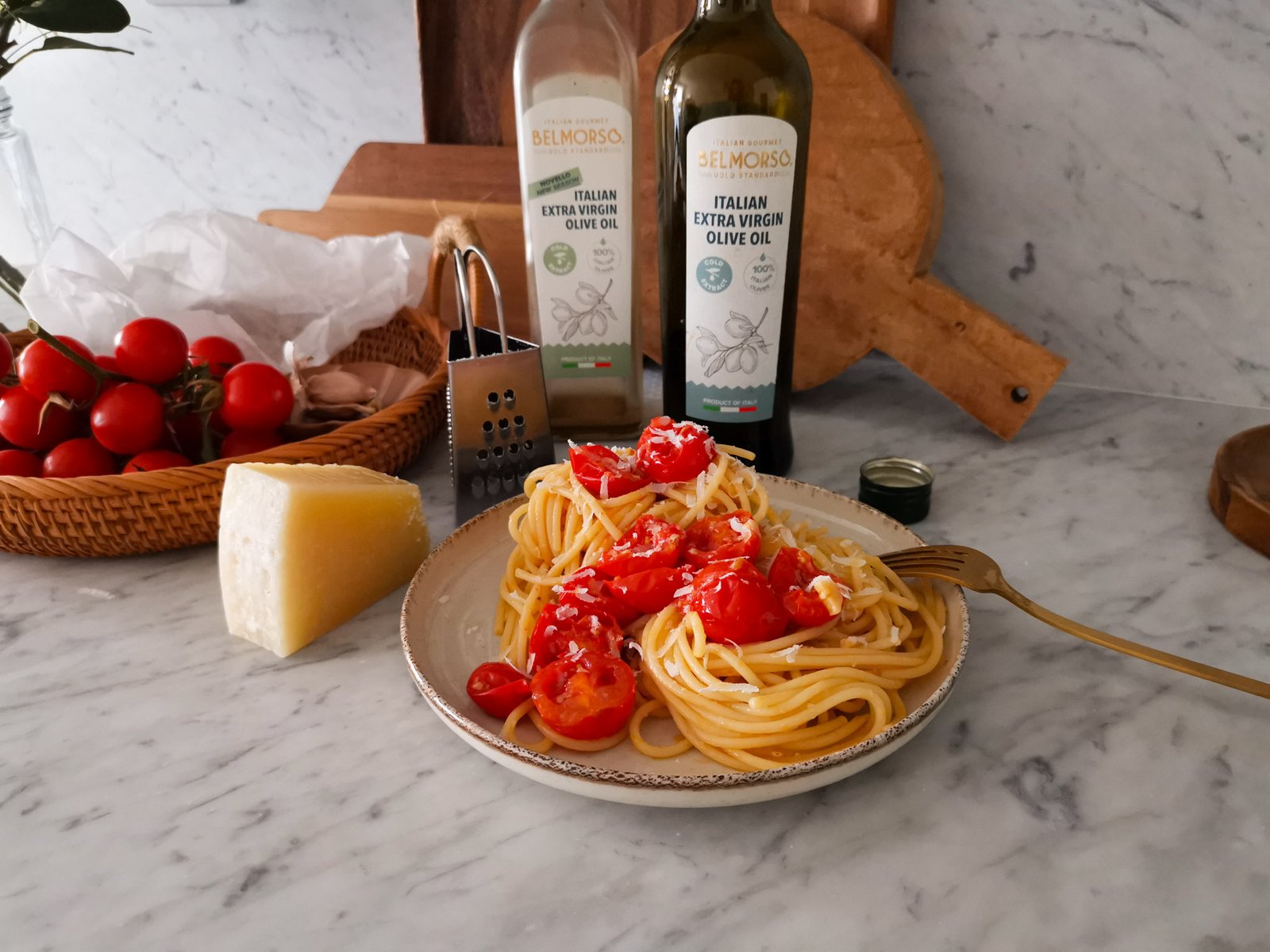 - Add the rest of the Belmorso EVOO, some cooking water (3-5 tablespoons), and mix.